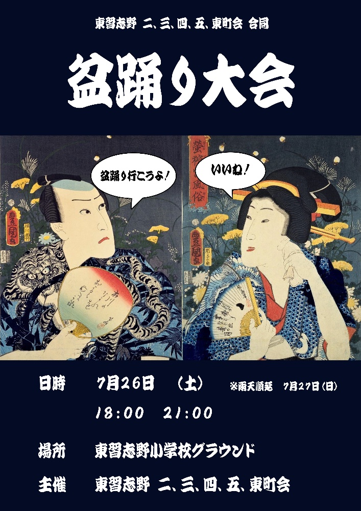令和6年7月27日(土)18時から、東習志野(5)町会合同盆踊り大会が開催されます。この盆踊り大会は、東習志野2丁目町会、3丁目町会、4丁目町会、5丁目町会、そして東町会の5団体が合同で主催し、東習志野小学校の校庭で行われます。