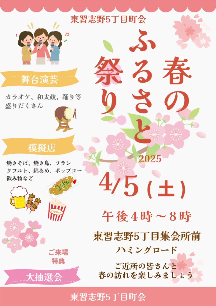 東習志野5丁目町会では、毎年4月に「春のふるさと祭り」を開催しています。